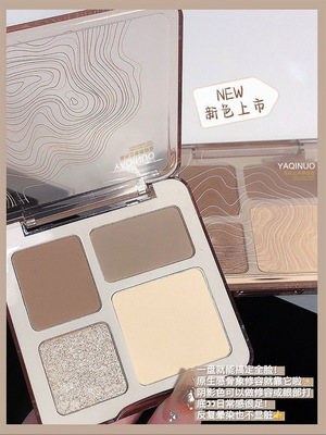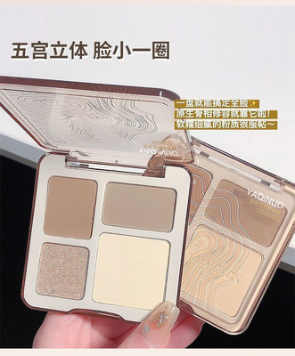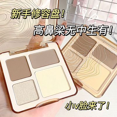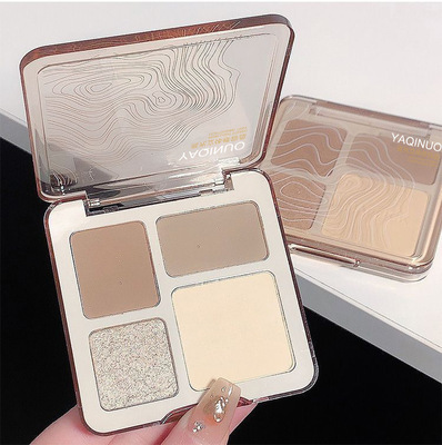 Yaqiino Four-Color Contour Palette - Integrated Highlight and Contour Palette, Matt Highlighting and Glitter Highlight Eyeshadow and Contour Palette