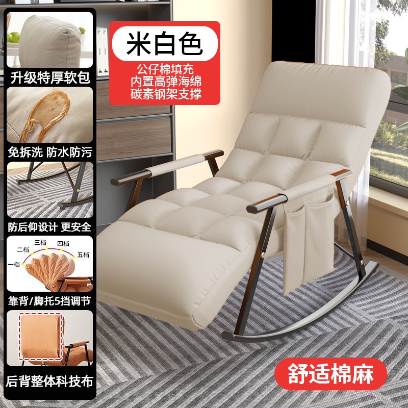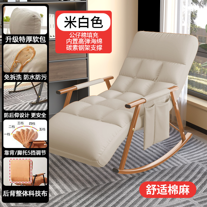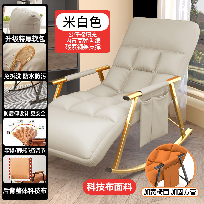 Tech fabric rocking chair lounge chair adult balcony home use leisure can lie down can sleep lazy sofa single person trending rocking chair
