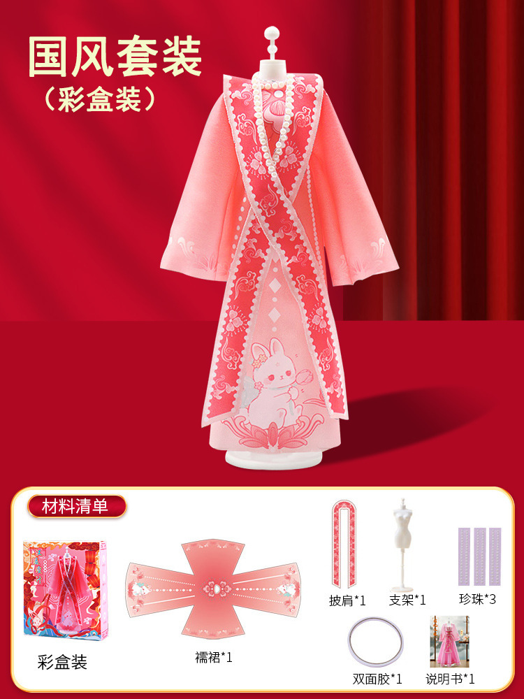 Children's Birthday Gift Costume Design Handmade DIY Girl Hanfu Toy Cutting Dress-Up Doll Chinese Style Color Box