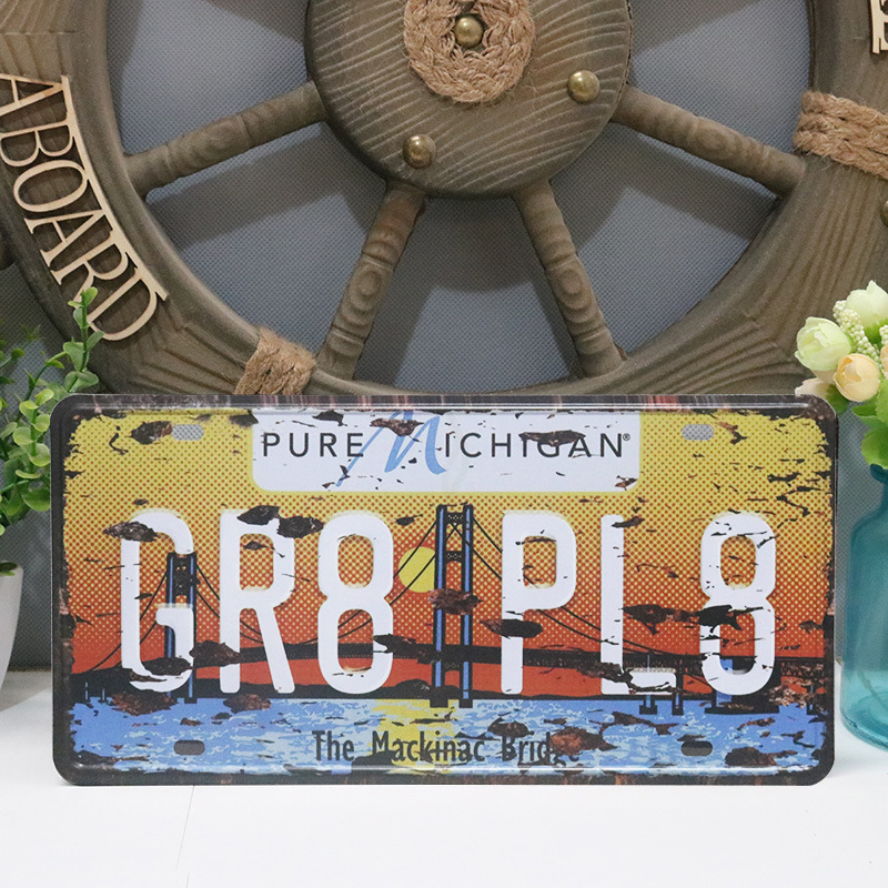 Retro American Creative Tin Plate License Plate Decorative Painting Bar Cafe Home Crafts Metal Wall Decor Wall Ornament