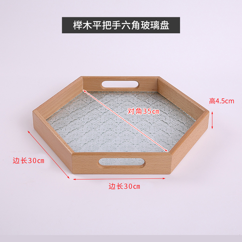 櫸木六角玻璃盤小號30*30*3