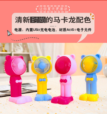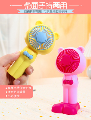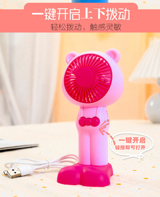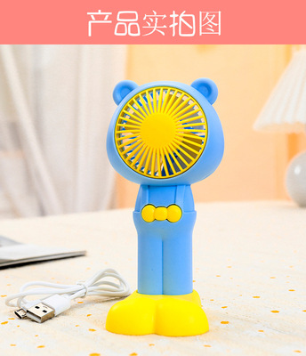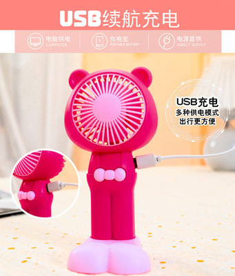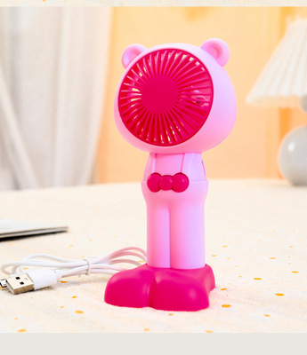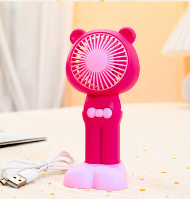 Outdoor portable handheld cute bear-shaped strap pants USB large foot stand base desk fan