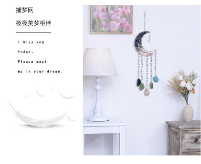 Dreamer Handmade Moon Catcher Net Crystal Crushed Agate Shaped Stone Gemstone Jewelry Accessory Home Decor Wall Hanging
