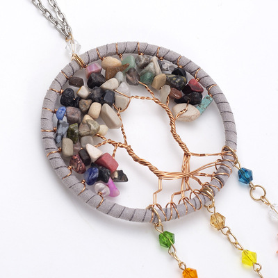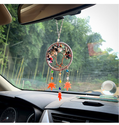 汽車掛件捕夢網碎石車載飾品創意手工生命樹車內裝飾品後視鏡掛飾