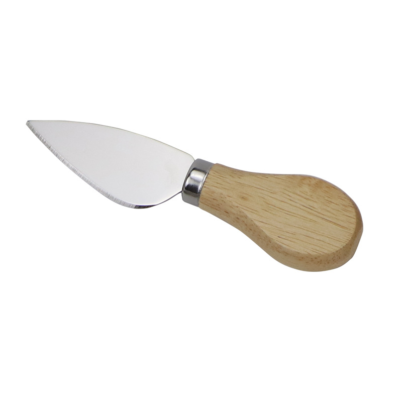 Wholesale stainless steel cheese knife with oak flat handle cheese spatula set of four, pizza knife, butter knife, baking tools
