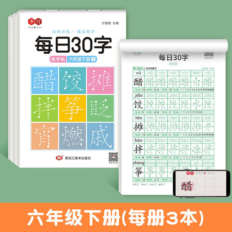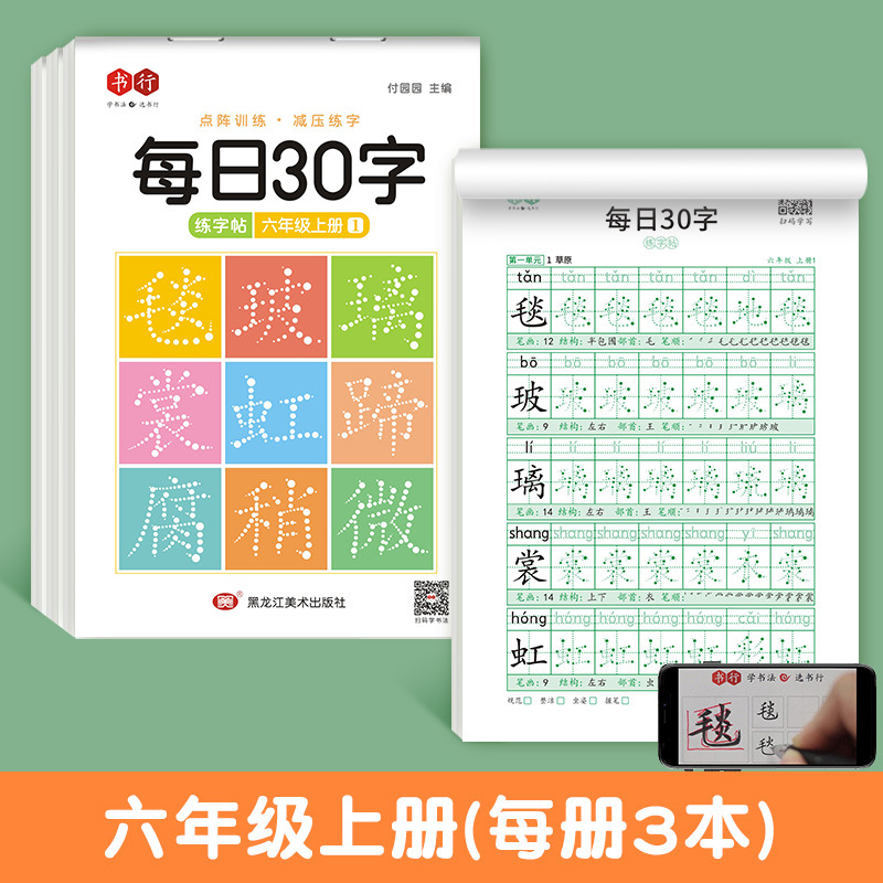 減壓同步字帖每日30字小學生1-6年級語文生字描紅練習本【分銷】