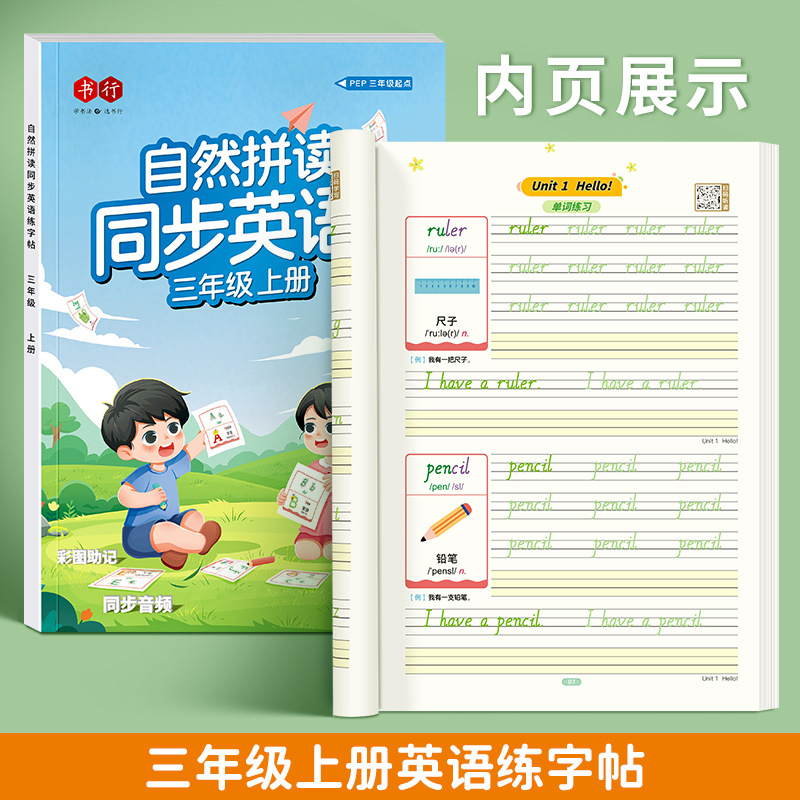 【Book Row】Third Grade English Synchronized Practice Workbook for Handwriting, Volumes 4, 5, and 6, Elementary School Students' Handwritten Font, Word Tracing Exercises