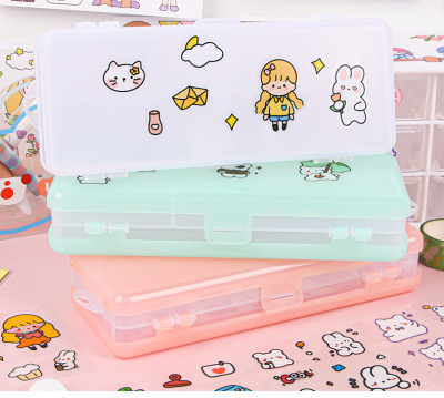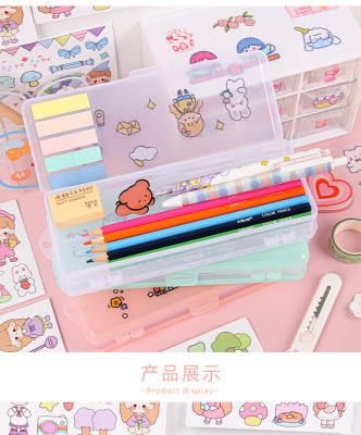 雙層文具盒透明磨砂大容量塑料鉛筆盒可diy中小學生文具收納盒