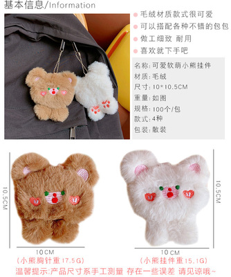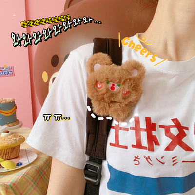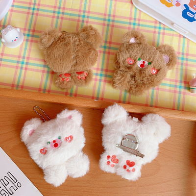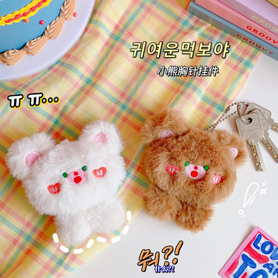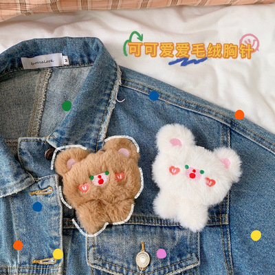 Original cute soft and fluffy bear hair pin accessory, 3D stereoscopic sweet student uniform brooch, bag pendant