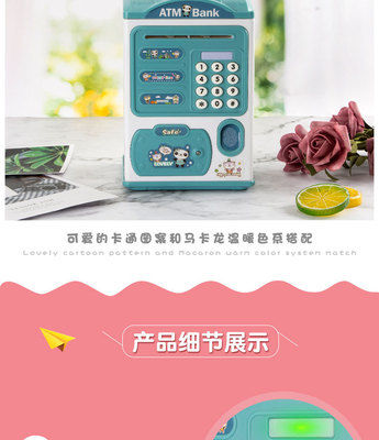 Creative Cartoon Fingerprint Piggy Bank with Light and Music ATM Password Box Automatic Money Rolling Coin Gift Toy