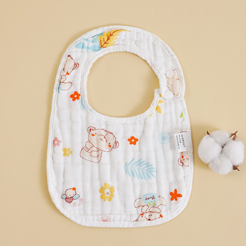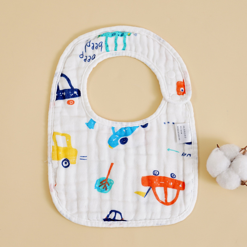 Bulk printed U-shaped bibs, eight-layer cotton gauze bibs for babies, cartoon-style maternal and infant supplies, baby bibs