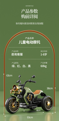 Children's Electric Motorcycle for Boys and Girls, Three-Wheeled Battery-Powered Bike, Baby and Kids Can Sit, Adults Can Charge, Remote Control Toy Car