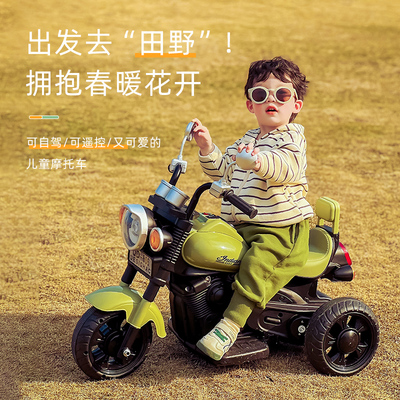 兒童電動摩托車三輪車男女孩寶寶電瓶車小孩可坐人充電遙控玩具車
