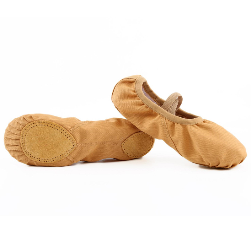 Dance Shoes for Girls and Women, No Ties Soft Sole Dancing Shoes, Gymnastics and Yoga Practice, Camel Color Fabric, Cat Paw Ballet Shoes