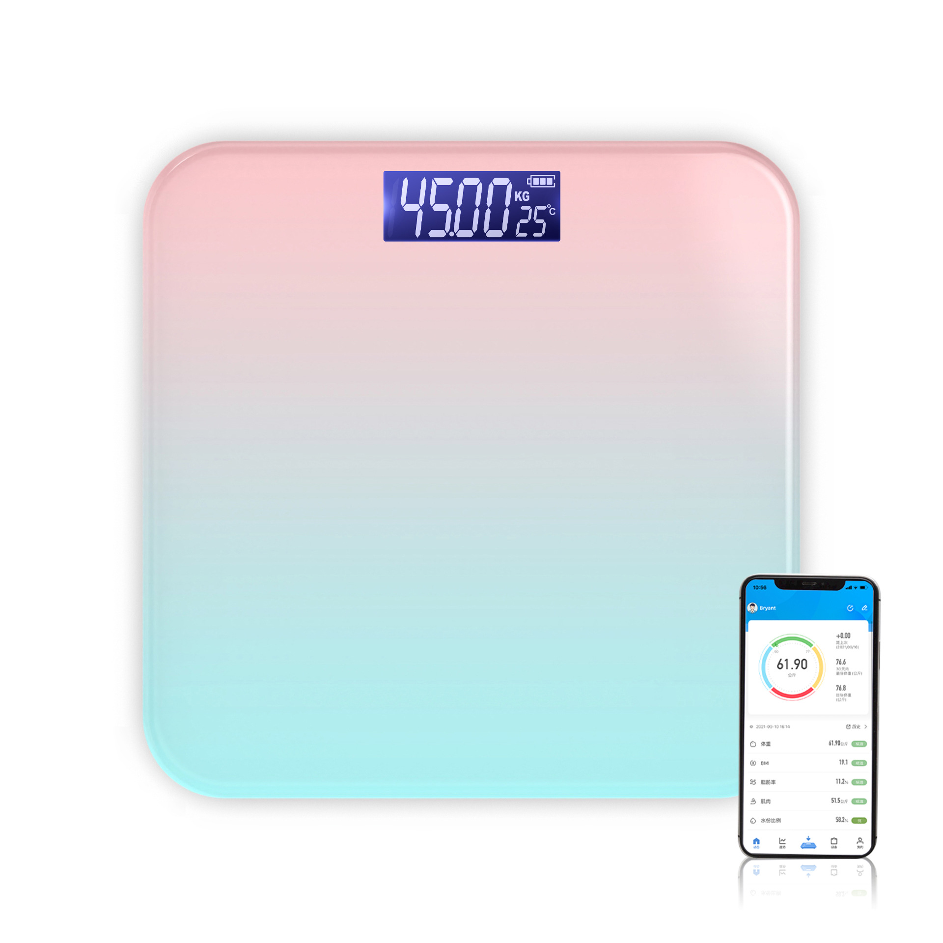 Smart Bluetooth connected phone body fat scale wholesale adult portable cute style home LED fat body scale