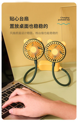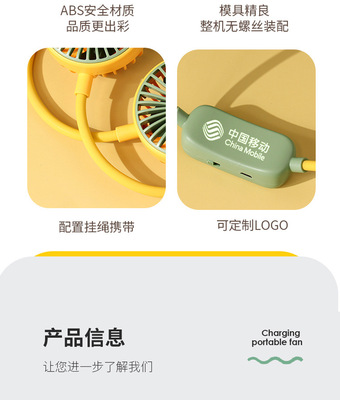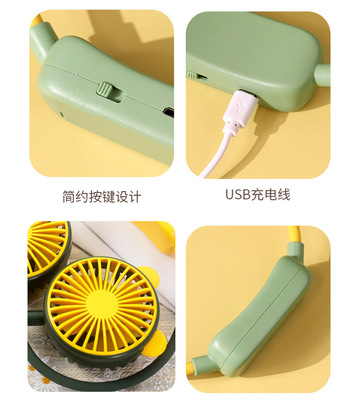 High-Quality Outdoor Cartoon Strap Lazy Man Small Fan Company Gift Portable Foldable Charging Sports Fan