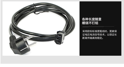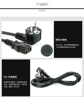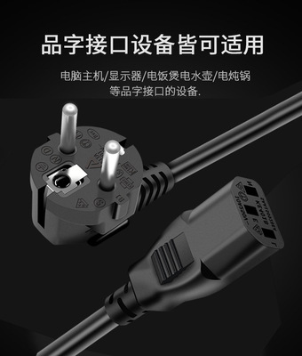 VDE-certified European standard power cord with plug, three-prong European computer host, monitor, kettle, universal cross-shaped tail