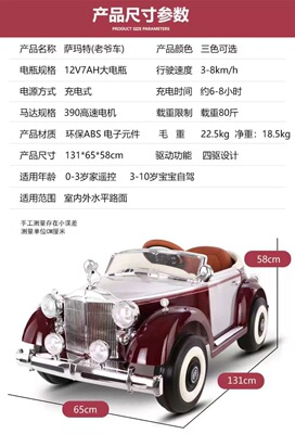 Children's Electric Car Samart Antique Car for Boys and Girls, Remote Control Toy Car, Can Sit Adults, 4-Wheel Drive Kids Car