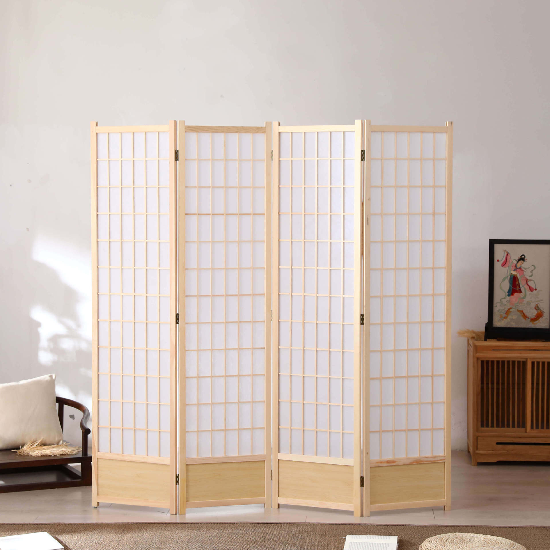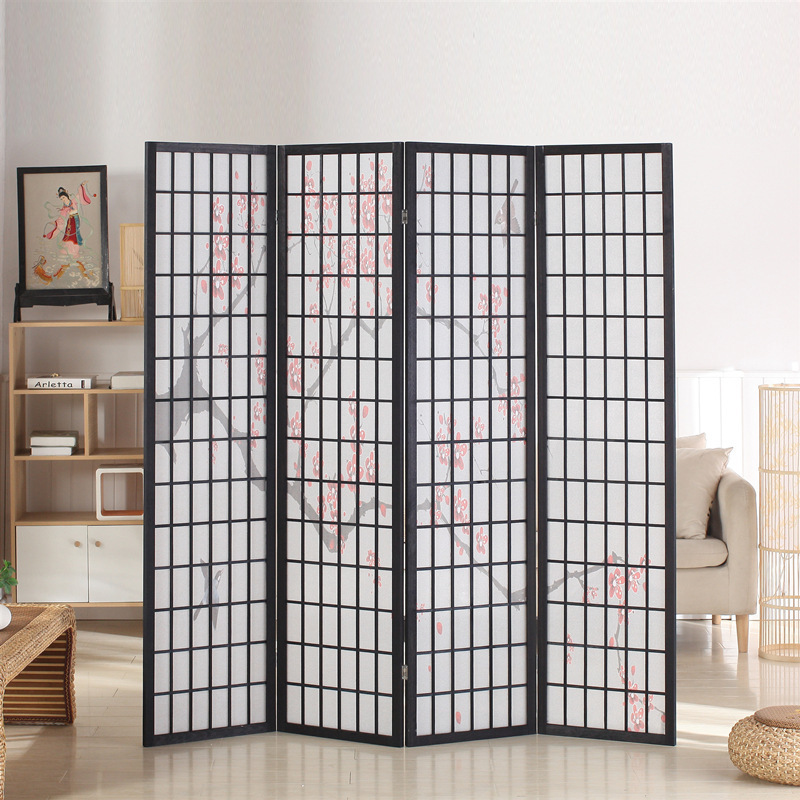 Japanese-style solid wood lattice partition wall wooden lattice entrance hall living room hotel folding mobile partition screen