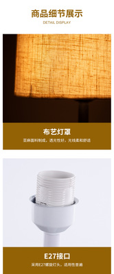 Table lamp with black rod and fabric shade + gift of 12W three-level dimming