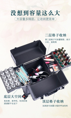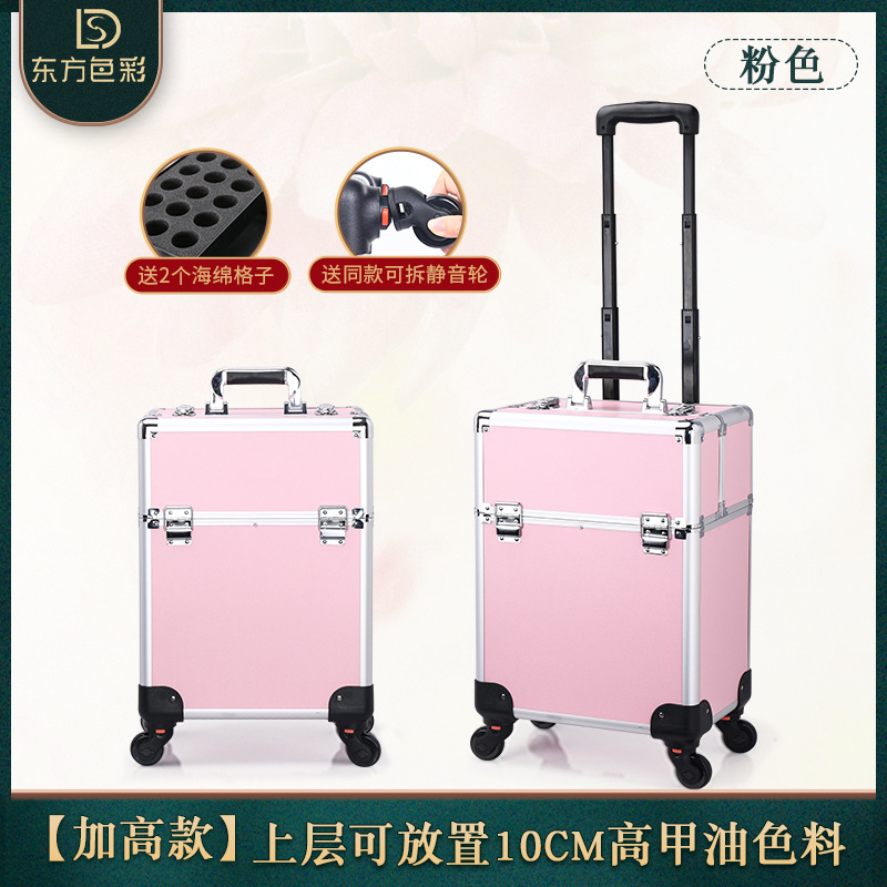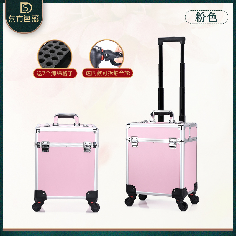 Pull-along makeup case with multiple layers and large capacity, nail art and micro-embroidery beauty tool case with pull-along trunk, direct sale from the manufacturer