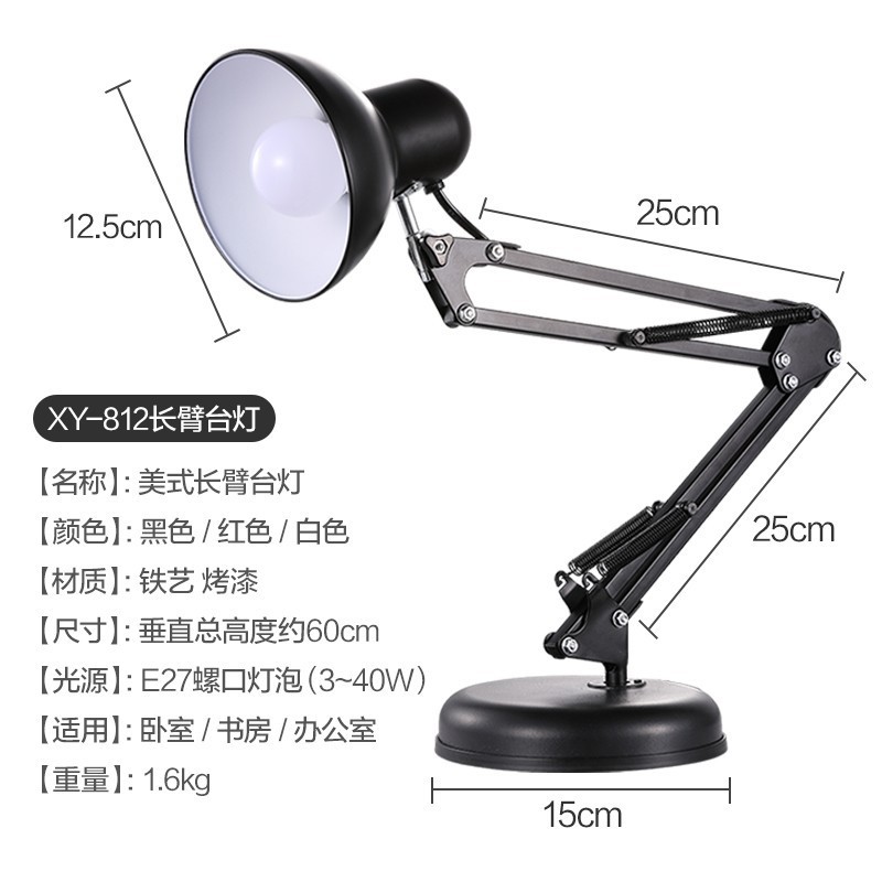 Learning and Reading Eye-Caring Desk Lamp with Long Arm Folding Metal Dimmable Base for Dormitory and Study Room LED Warm Light Clip-on Lamp