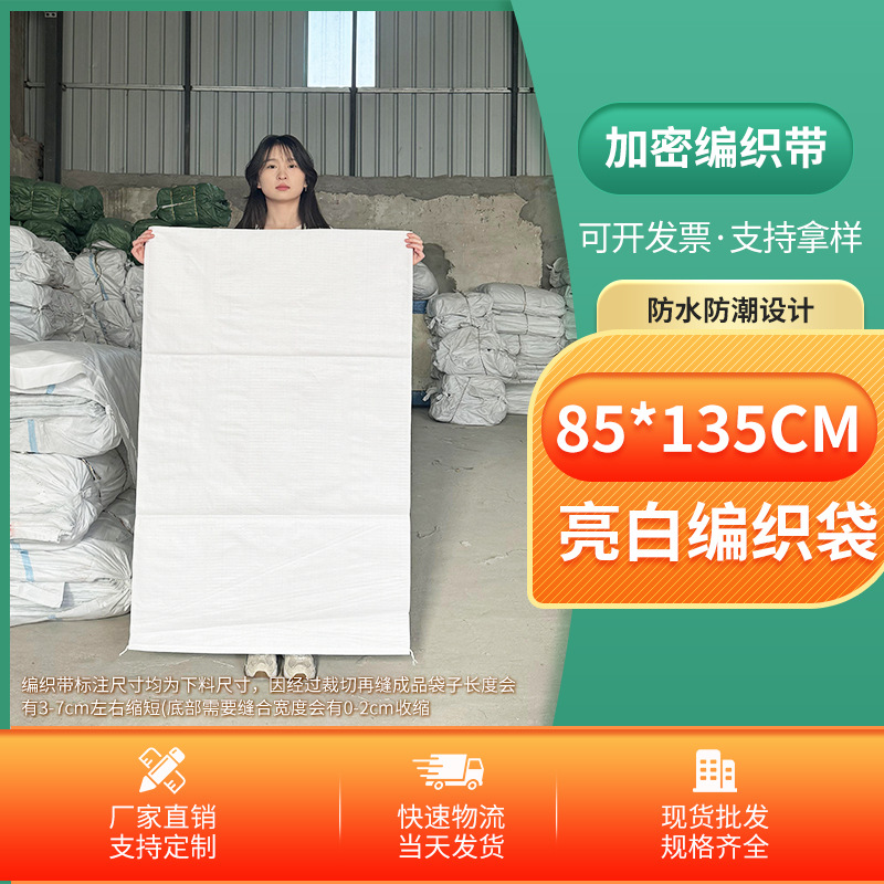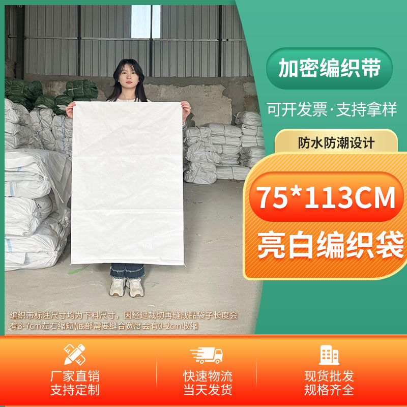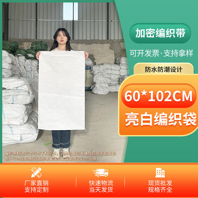 Thickened white plastic woven bag for rice and flour, travel and moving bag, snake skin laminated woven bag, wholesale and customization
