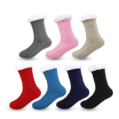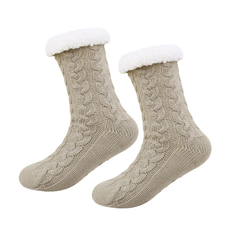 冬季加絨加厚居家地板襪成人襪 點膠防寒防滑雪地襪懶人保暖襪
