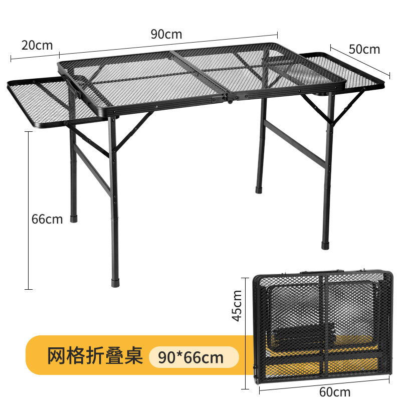 可升降鐵網桌便攜可摺疊延展雙耳桌子戶外露營野餐網格燒烤桌批發