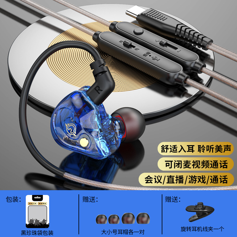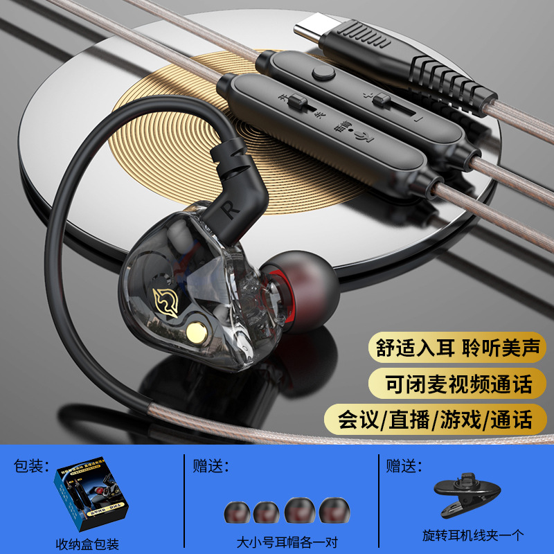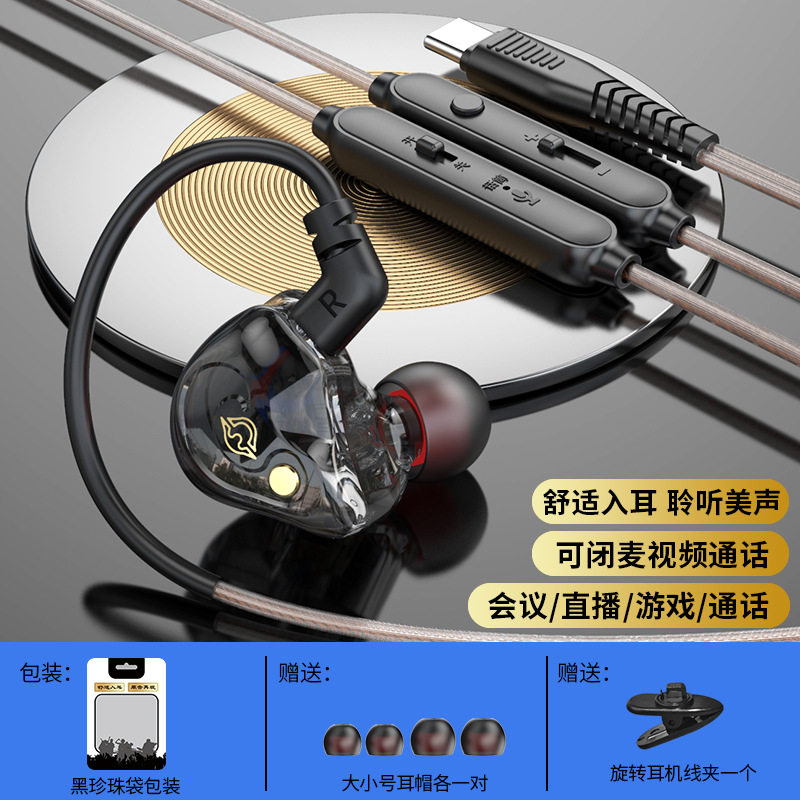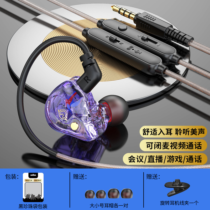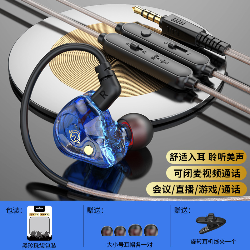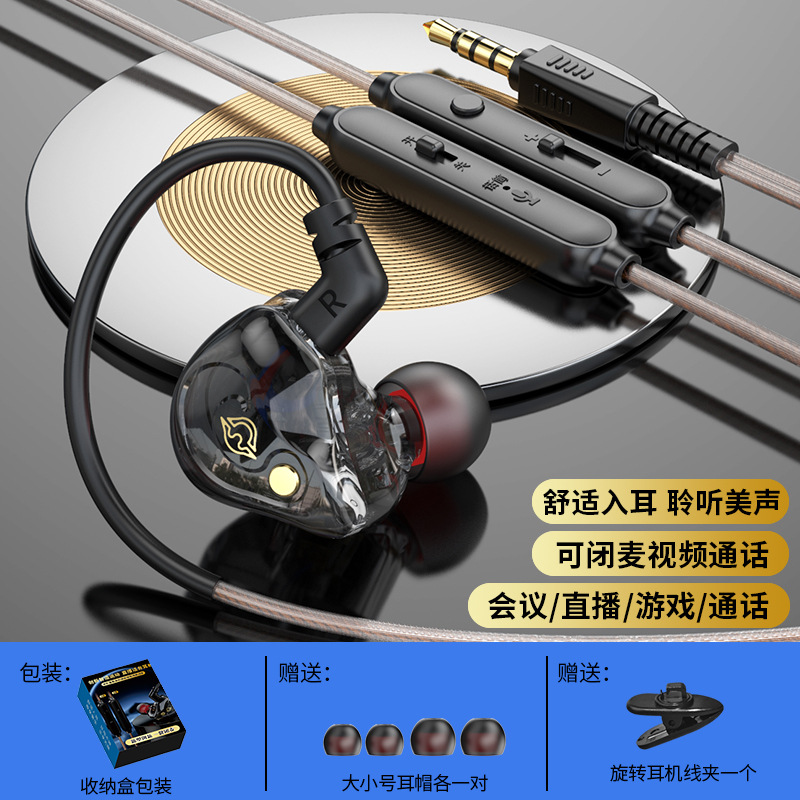 Private model one-click mute headset live video mute wired headset sports in-ear universal monitoring headset