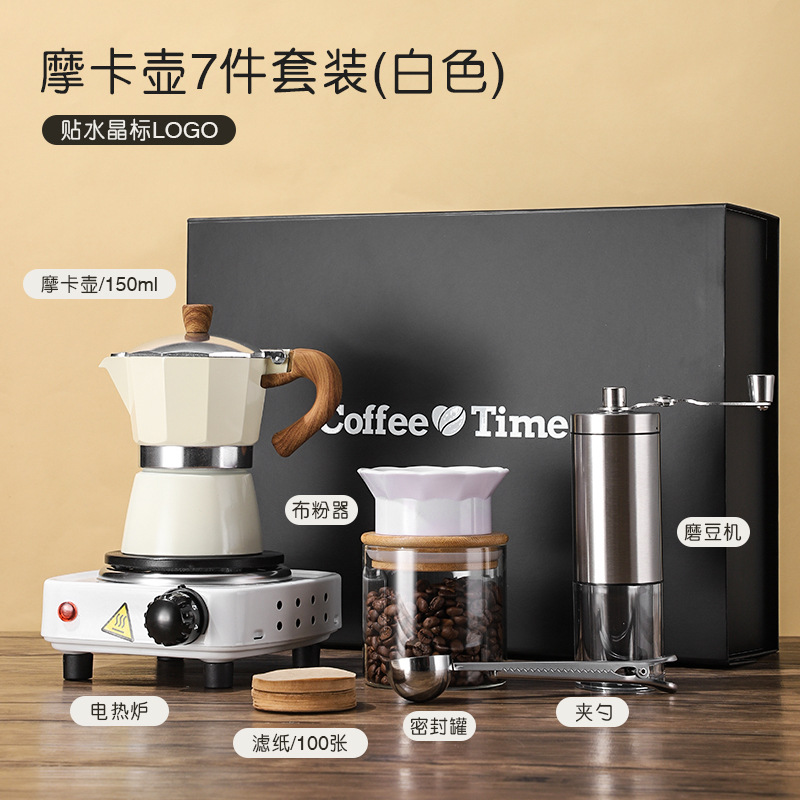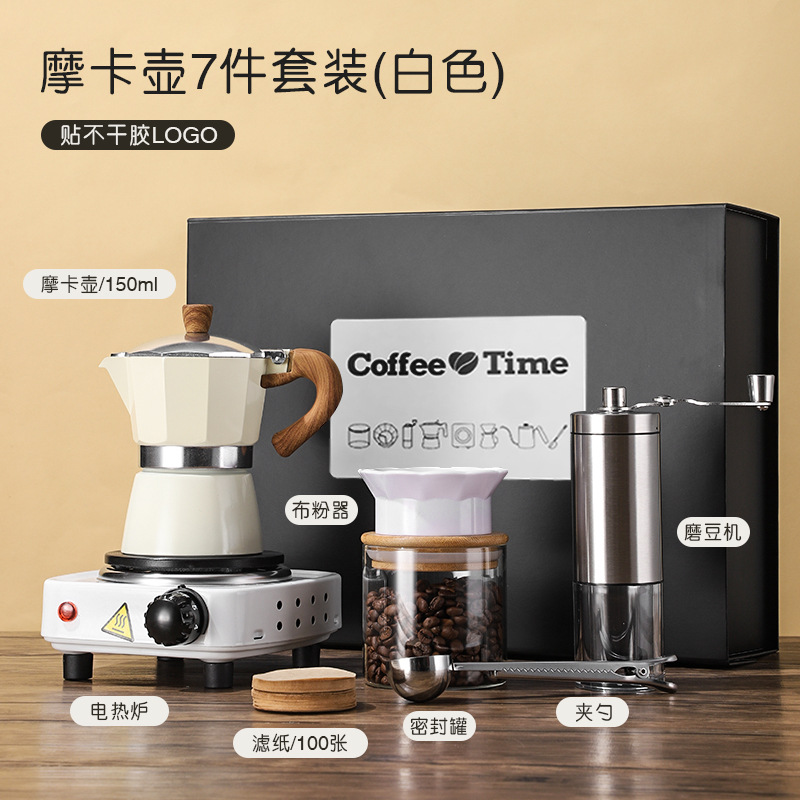 Components: Moka Pot + Electric Stove + Coffee Grinder + Tongs + Filter Paper + Sealed Can + Cloth Duster