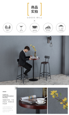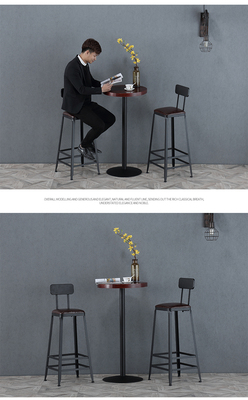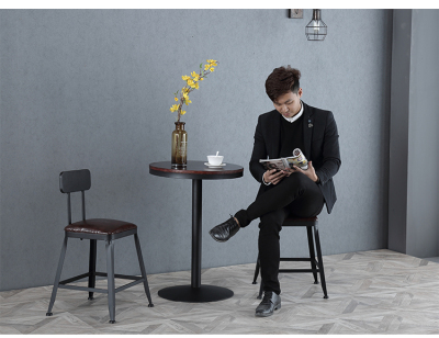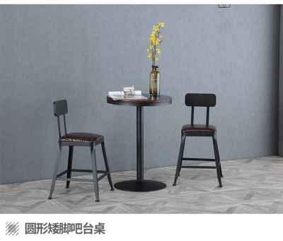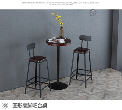 Solid wood and iron craft loft high-legged bar table and chairs, coffee round bar table for industrial-style milk tea shop, casual round table bar