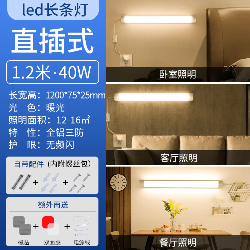 直插式燈管led燈條日光宿舍長條書桌照明臥室磁吸附家用吸頂
