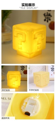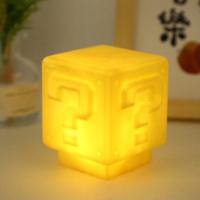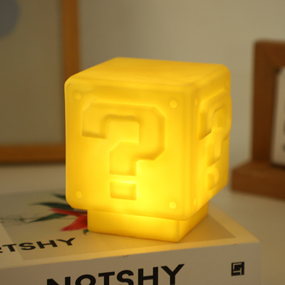 馬里奧夜燈超級瑪麗問號發光小夜燈方塊磚電競房間裝飾桌面氛圍燈