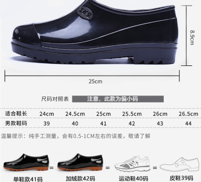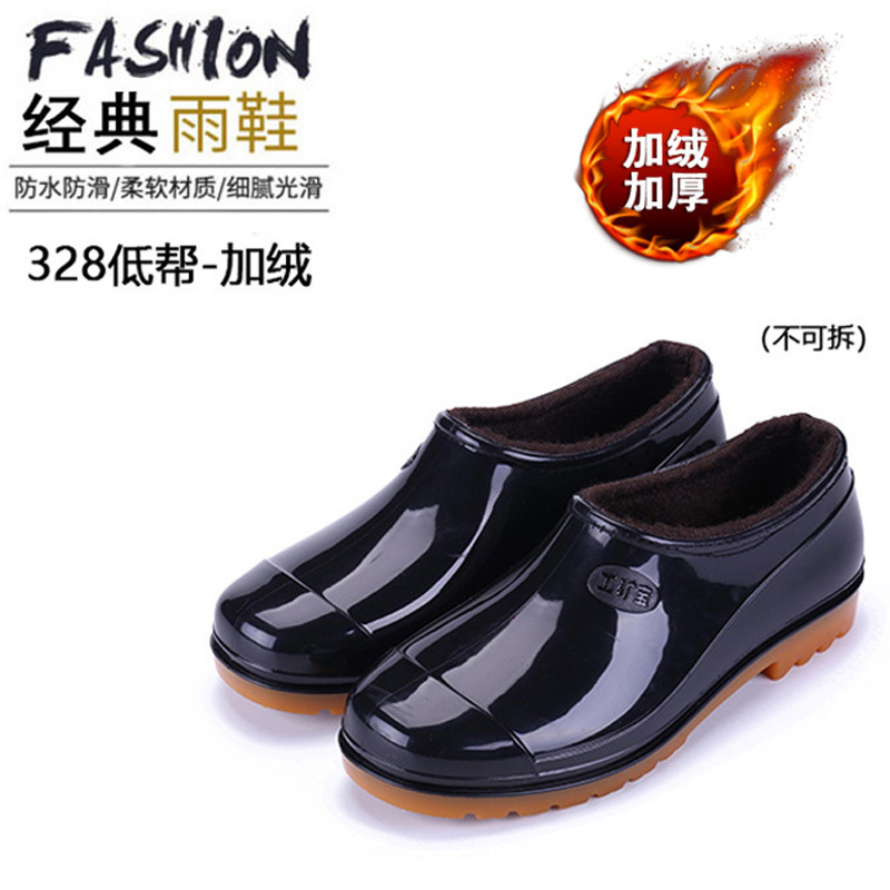 Low-top rain boots water shoes rain shoes men adult warm waterproof shoes shallow mouth rubber shoes booties slip-resistant short tube work summer