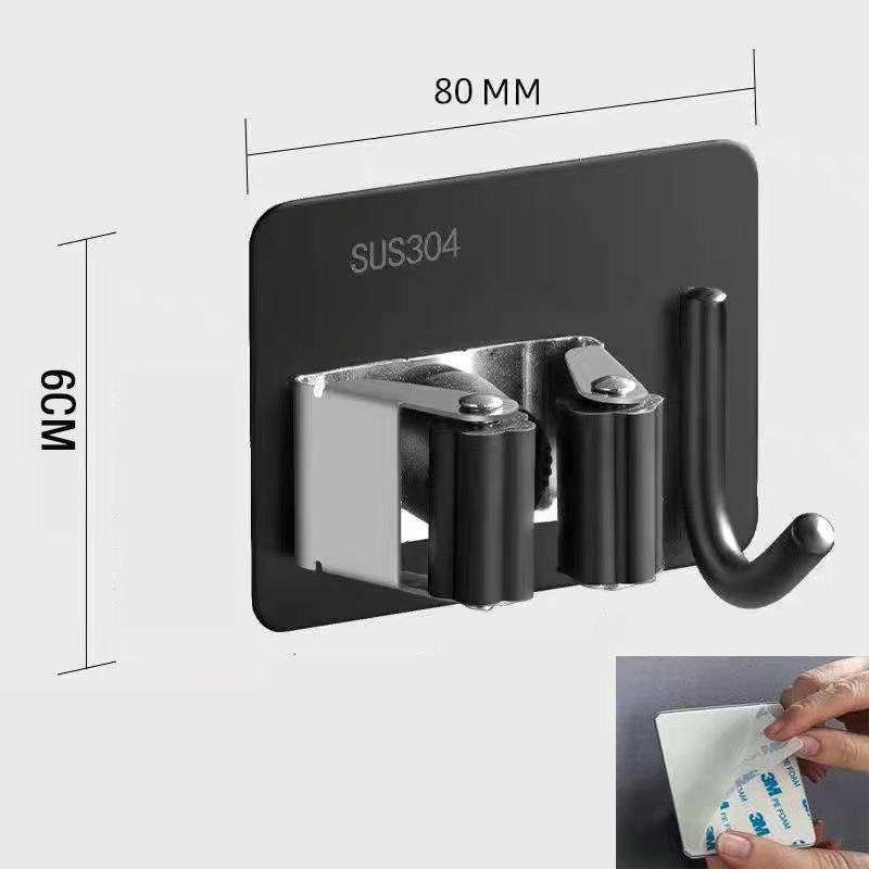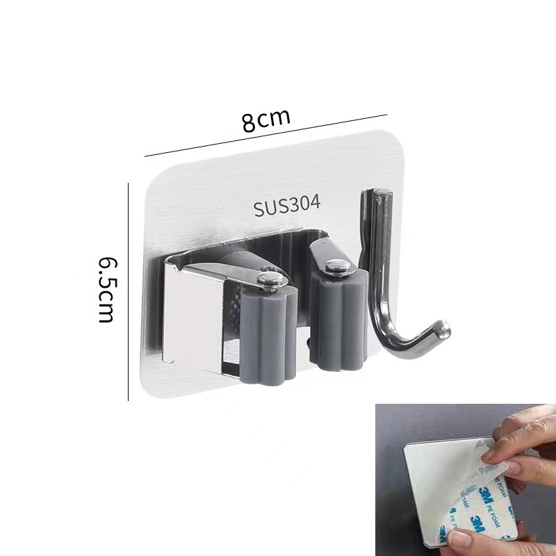 Cross-border Amazon stainless steel broom holder and hook dual-purpose broom rack storage gadget sweep hook bathroom hook