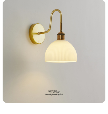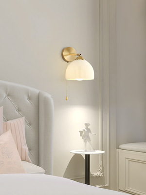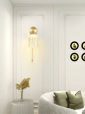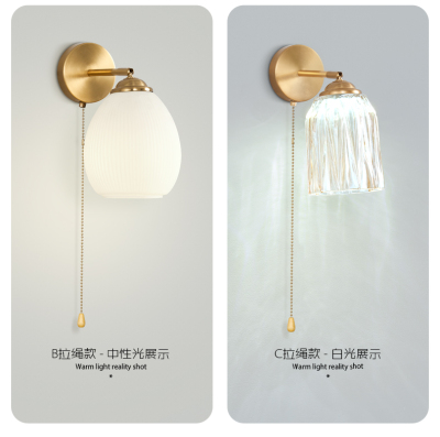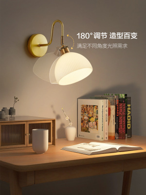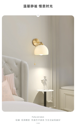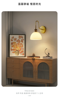 Retro wall lamp Nordic minimalist Japanese style bedroom night light living room background wall stairway entrance hallway glass lighting