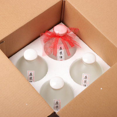 Glass wine jar transparent foam box 6 bottles, high-end wood glue lid