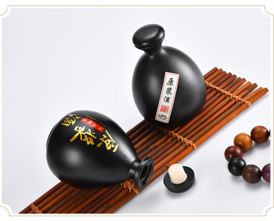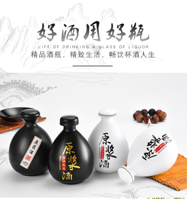 PK7J 1-jin ceramic wine jar, handcrafted antique-style glass liquor bottle, empty bottle with lid, household airtight container with bag