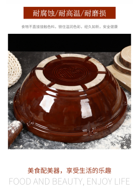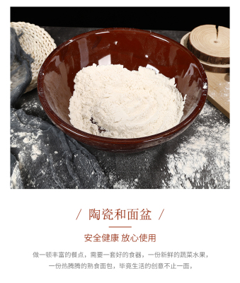 PK7J批發陶瓷老式大號帶蓋和面瓦盆土陶廚房家用曬醬活揉面盆耐高