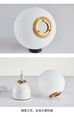 Nordic creative fashionable marble living room lamp modern simple personalized bedroom night light study room glass lamp