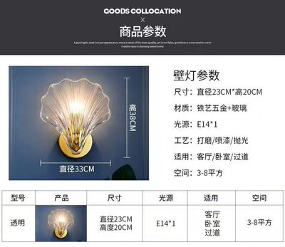輕奢簡約貝殼玻璃主臥室壁燈意式房間床頭客廳過道樓梯背景牆燈具