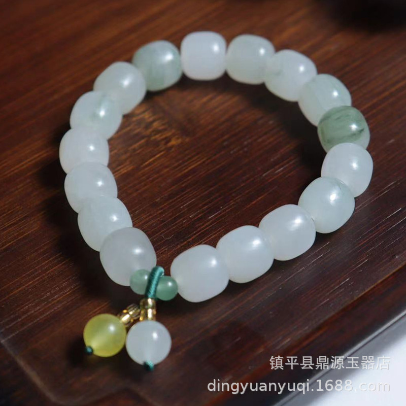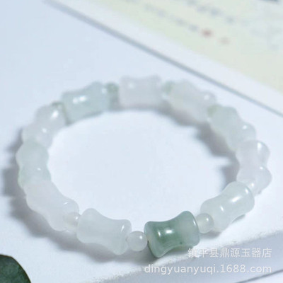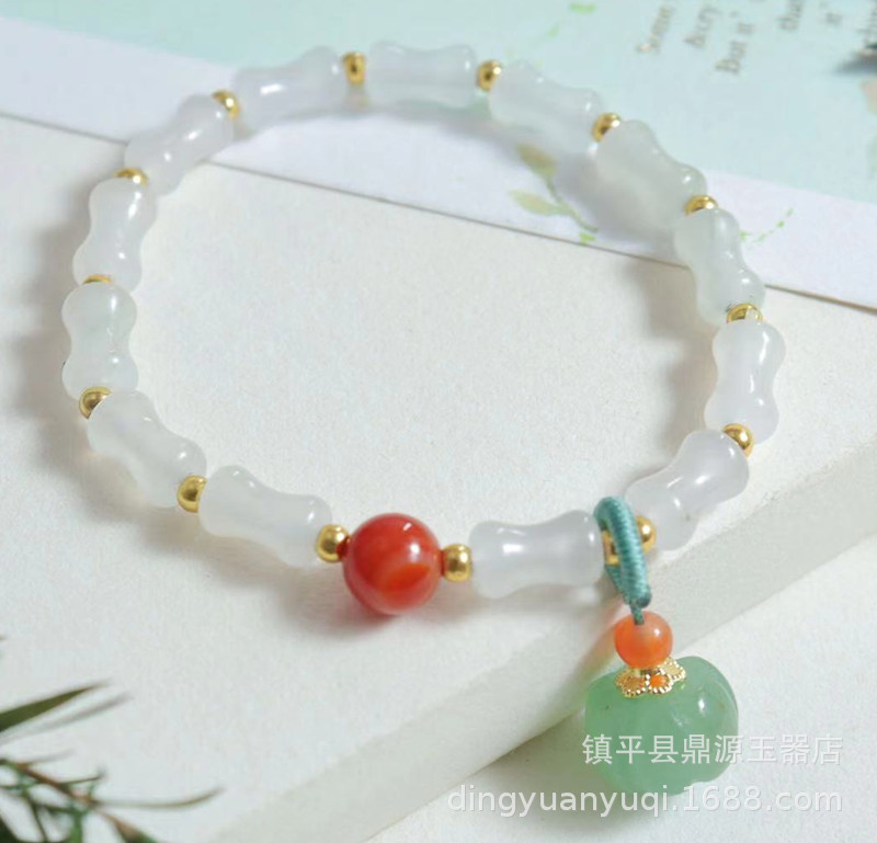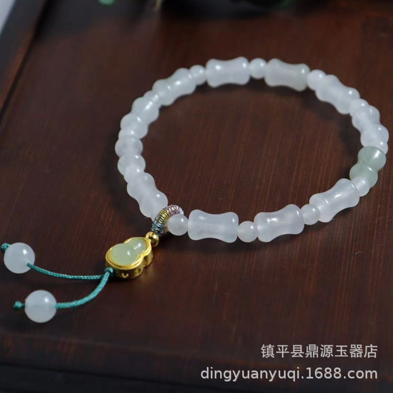 Natural Xinjiang Tianshan Jade Handchain, White Jade Flowing Flower Bamboo Joint Handchain, Luck Bead Jade Bracelet Live Streaming Gift Supply