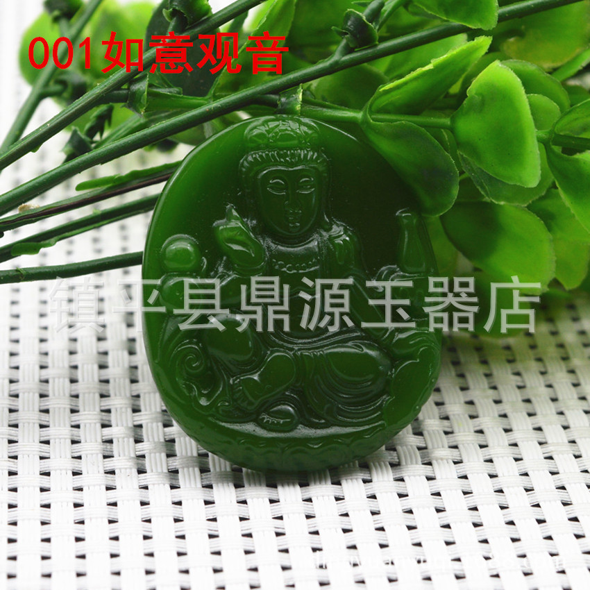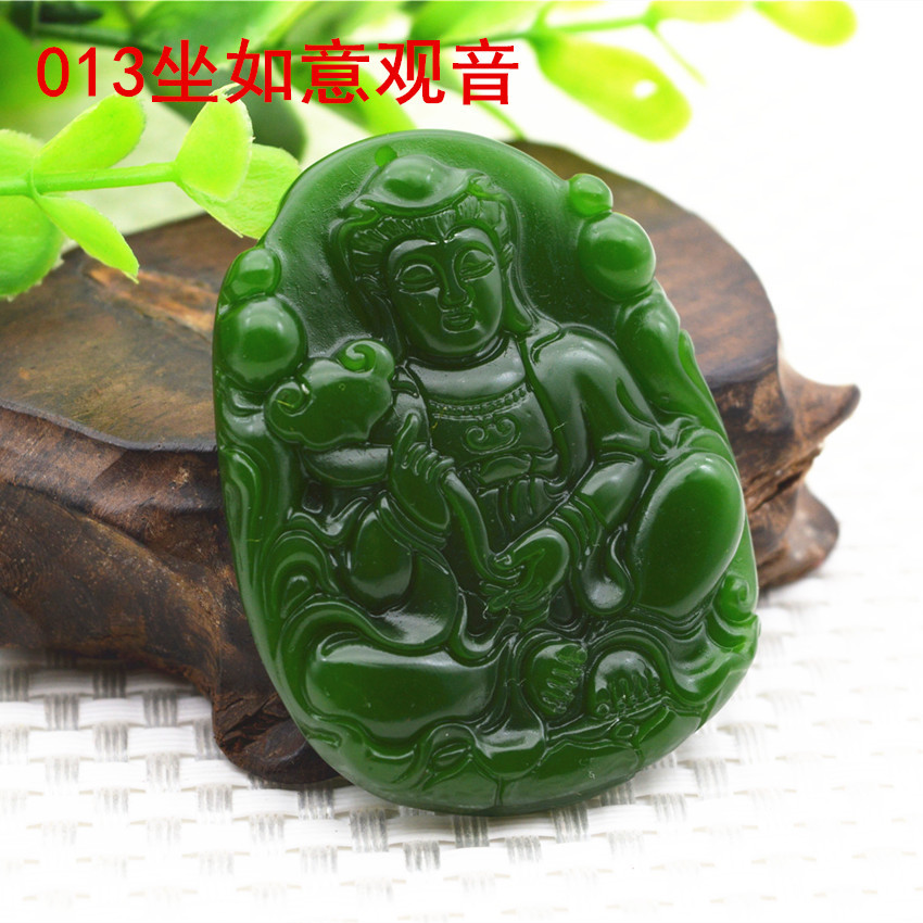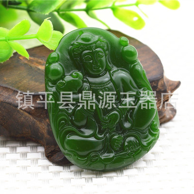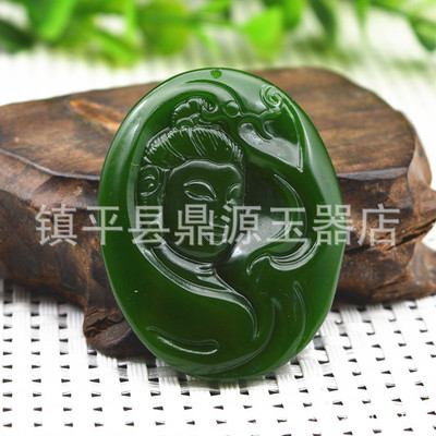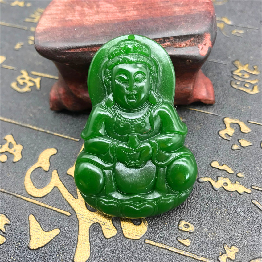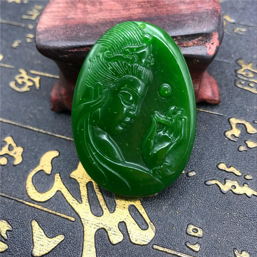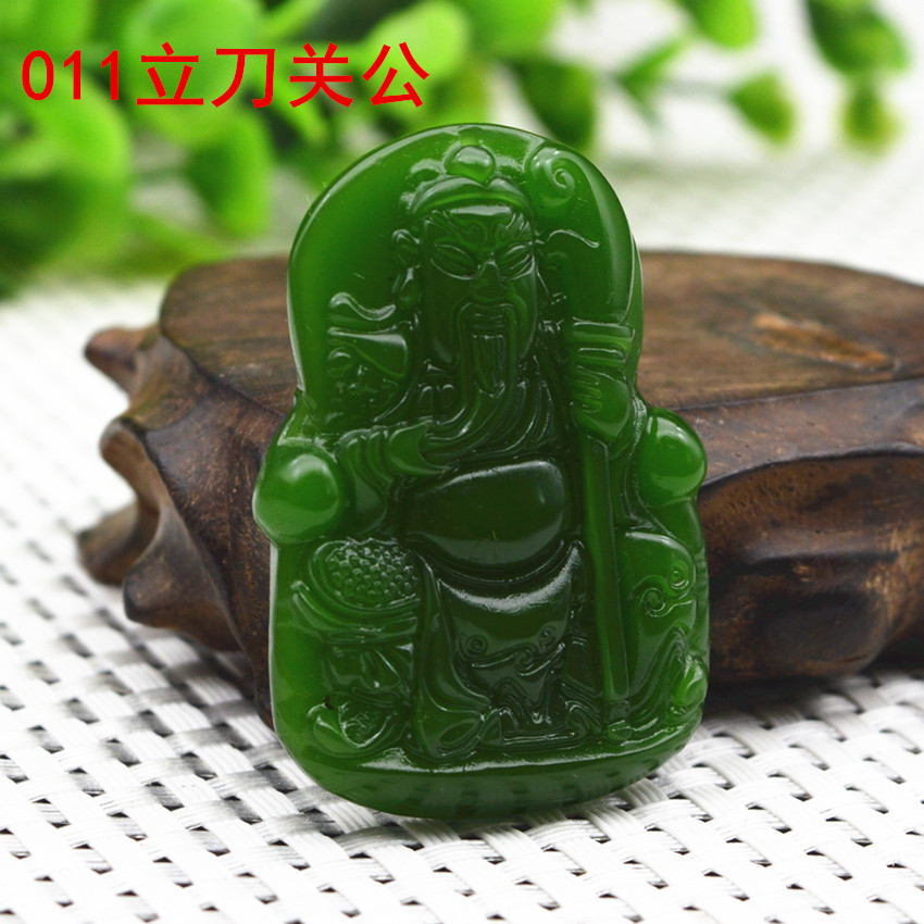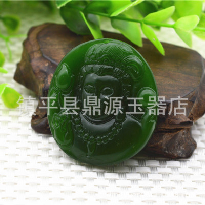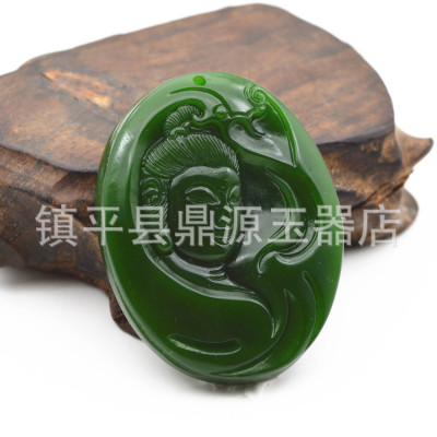 Heavenly Jade Nephrite Jade Pendant, Spinach Green Jade Guanyin Buddha Pendant, Outer Montage Jadeite Guan Gong Jade Pendant Wholesale