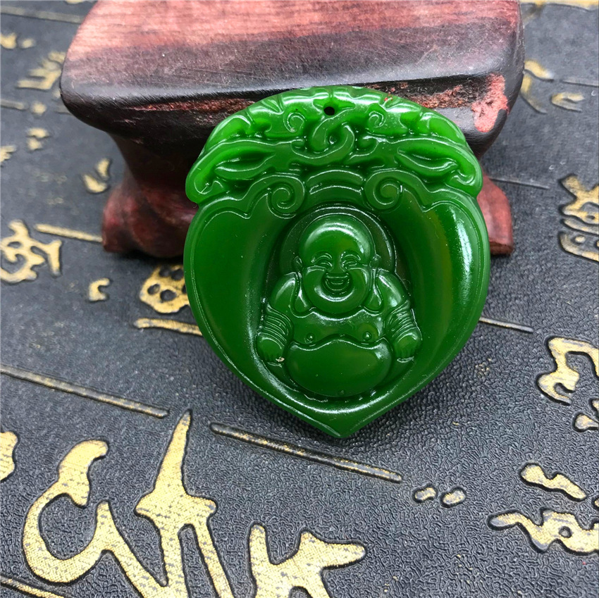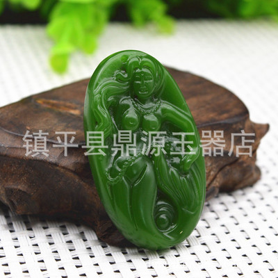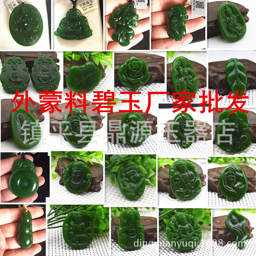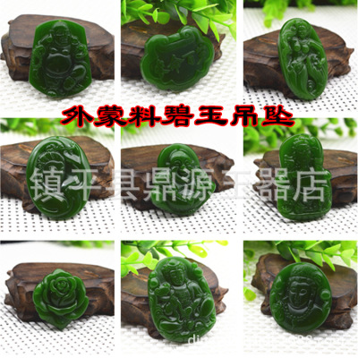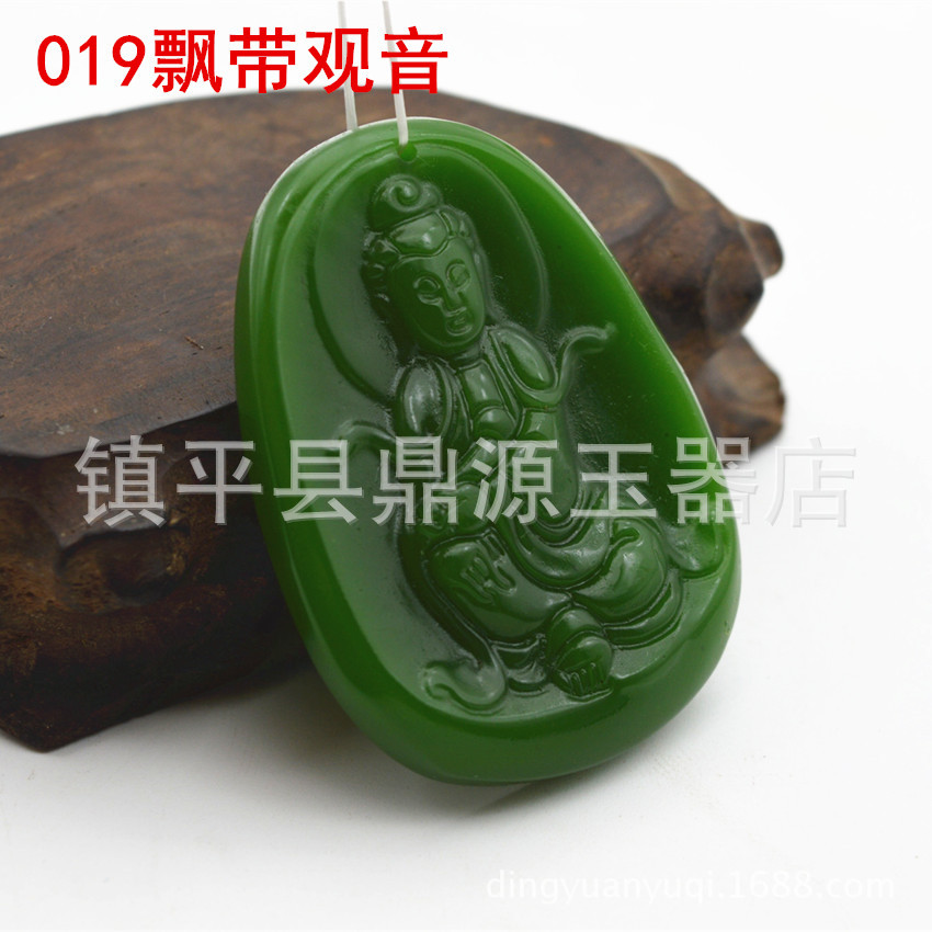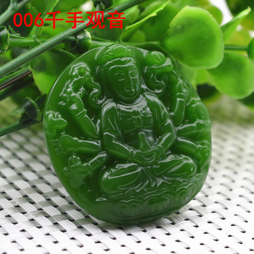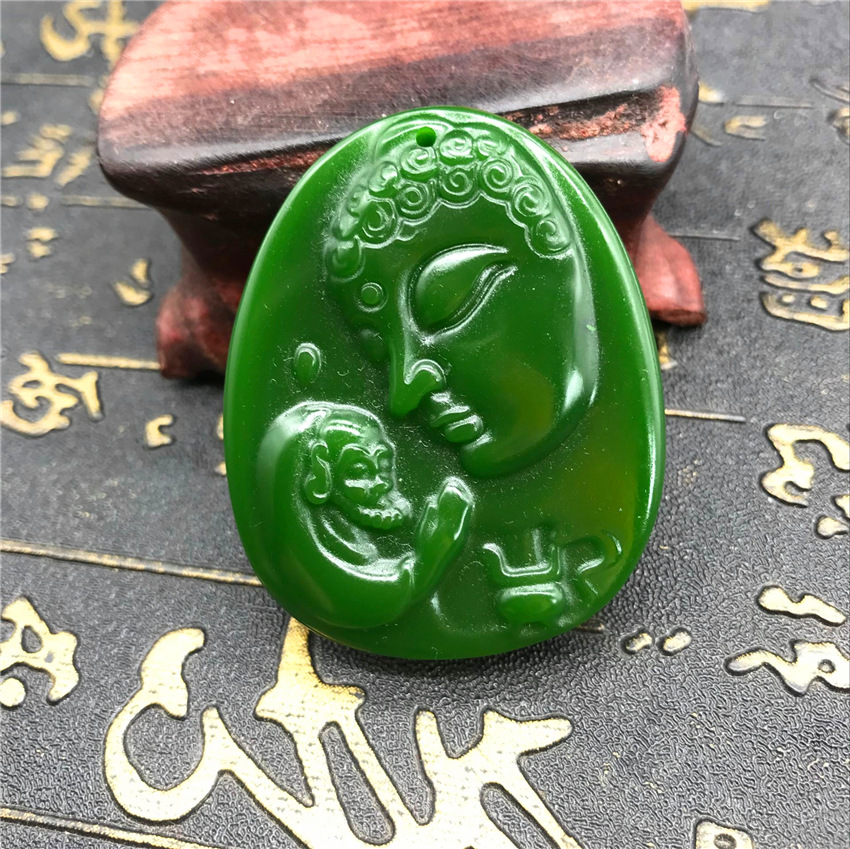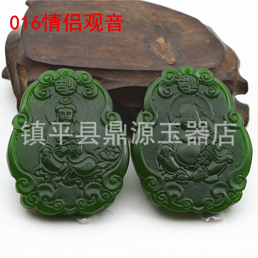Heavenly Jade Nephrite Jade Pendant, Spinach Green Jade Guanyin Buddha Pendant, Outer Montage Jadeite Guan Gong Jade Pendant Wholesale