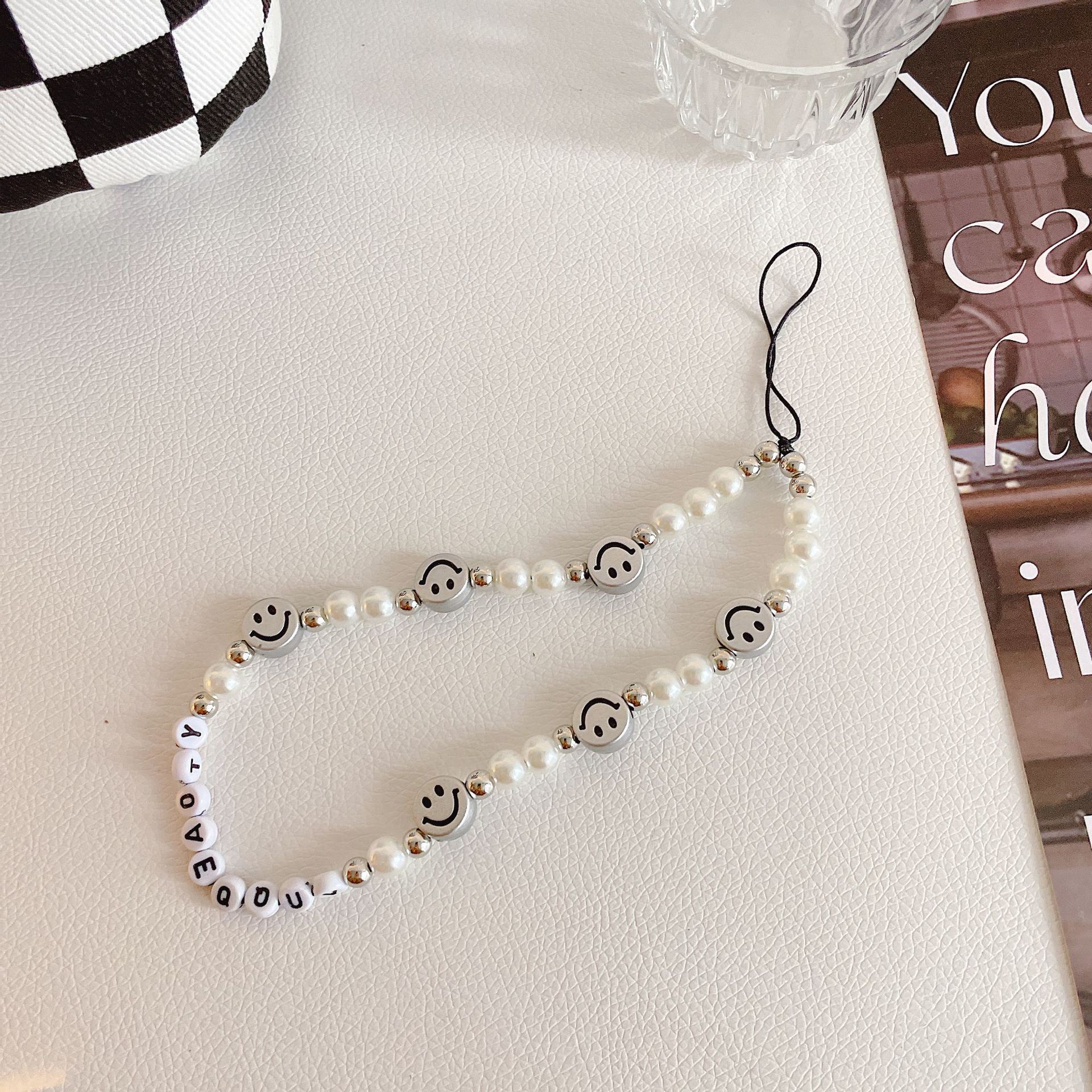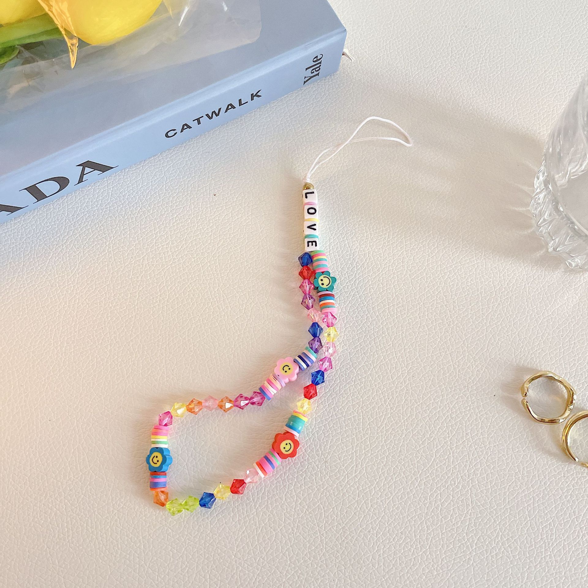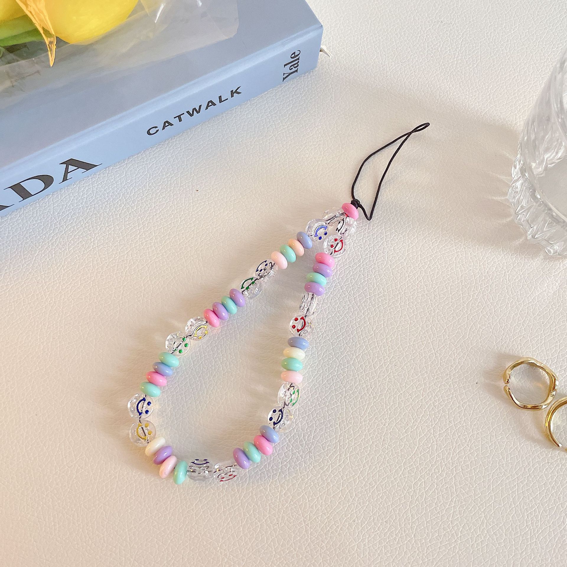 ins風手機鏈手機掛繩手工軟陶串珠創意笑臉鑰匙掛件包包掛飾適用