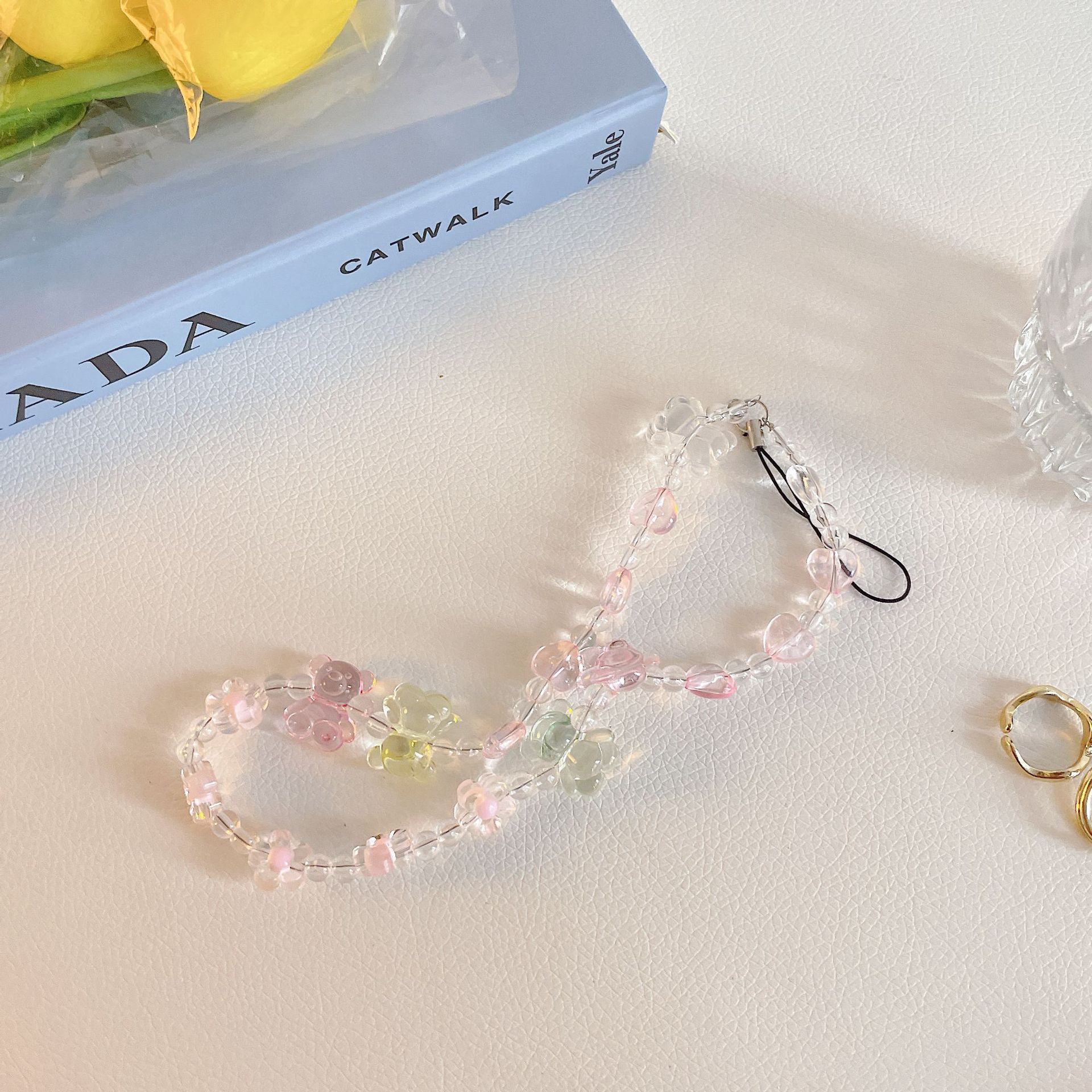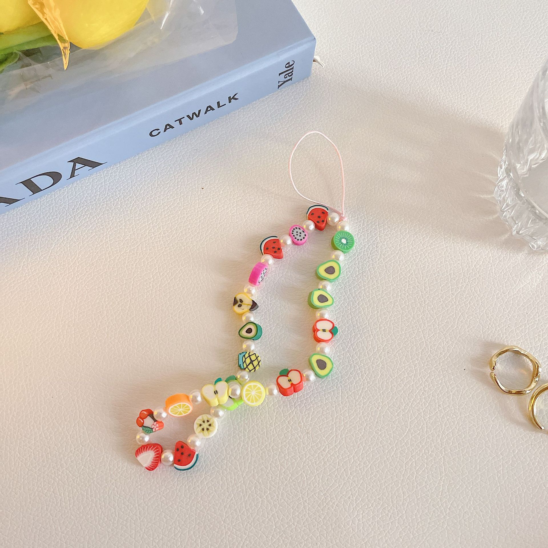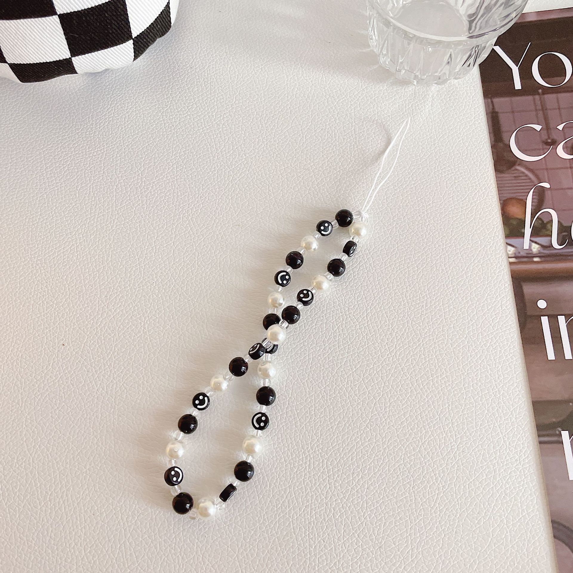 ins風手機鏈手機掛繩手工軟陶串珠創意笑臉鑰匙掛件包包掛飾適用