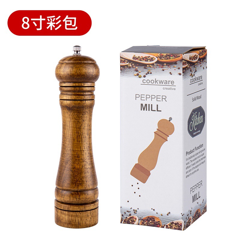 手動研磨器 5寸8寸10寸胡椒研磨器 橡木花椒現磨胡椒粉調味研磨瓶