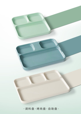 密胺餐具韓式烤肉蘸料盤分格盤子塑料餐盤燒烤蘸料調料盤多格商用