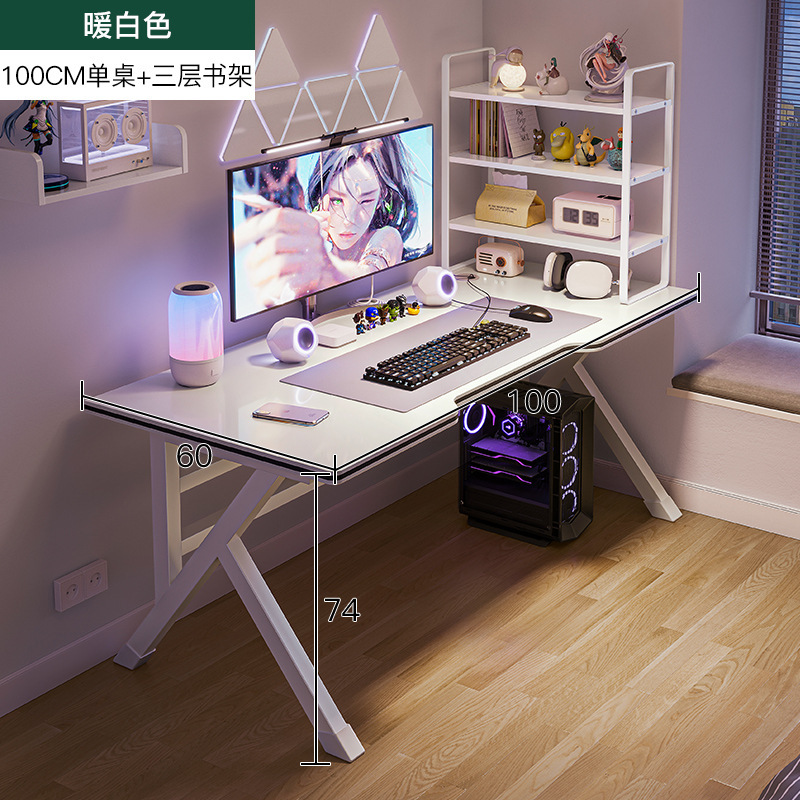 【加粗K型腿+穿線孔】 暖白色100*60cm單桌—送耳機架+集線器